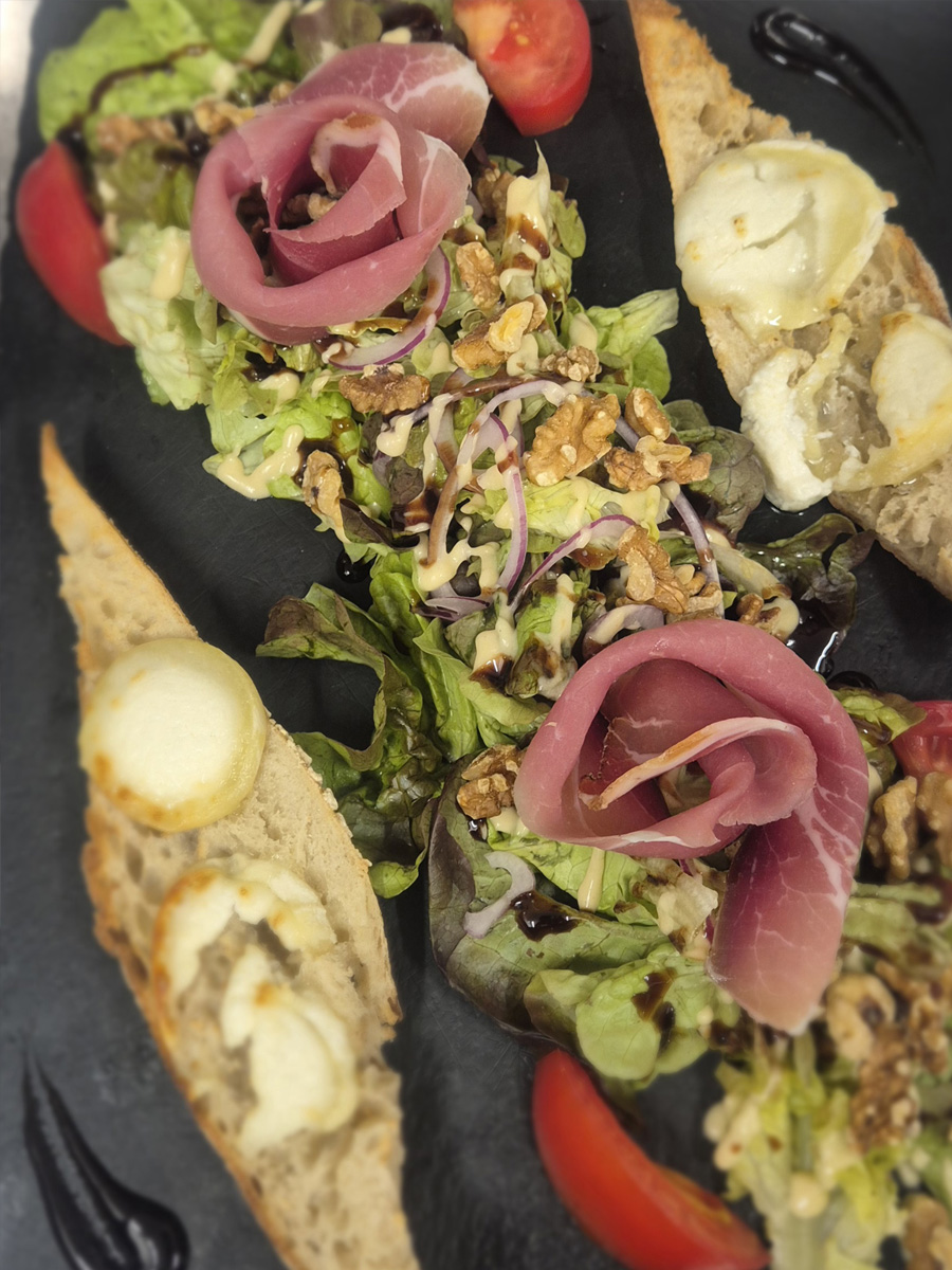 Nous nous engageons à mettre en avant les richesses du terroir des Pyrénées-orientales. Notre fromagerie propose une sélection exceptionnelle de fromages locaux, chaque variété racontant une histoire unique de la région du 66. La charcuterie que nous servons est préparée selon des recettes traditionnelles, préservant ainsi le goût du terroir à chaque bouchée. Nos viandes sont soigneusement sélectionnées pour leur qualité et leur saveur, garantissant une expérience culinaire inoubliable