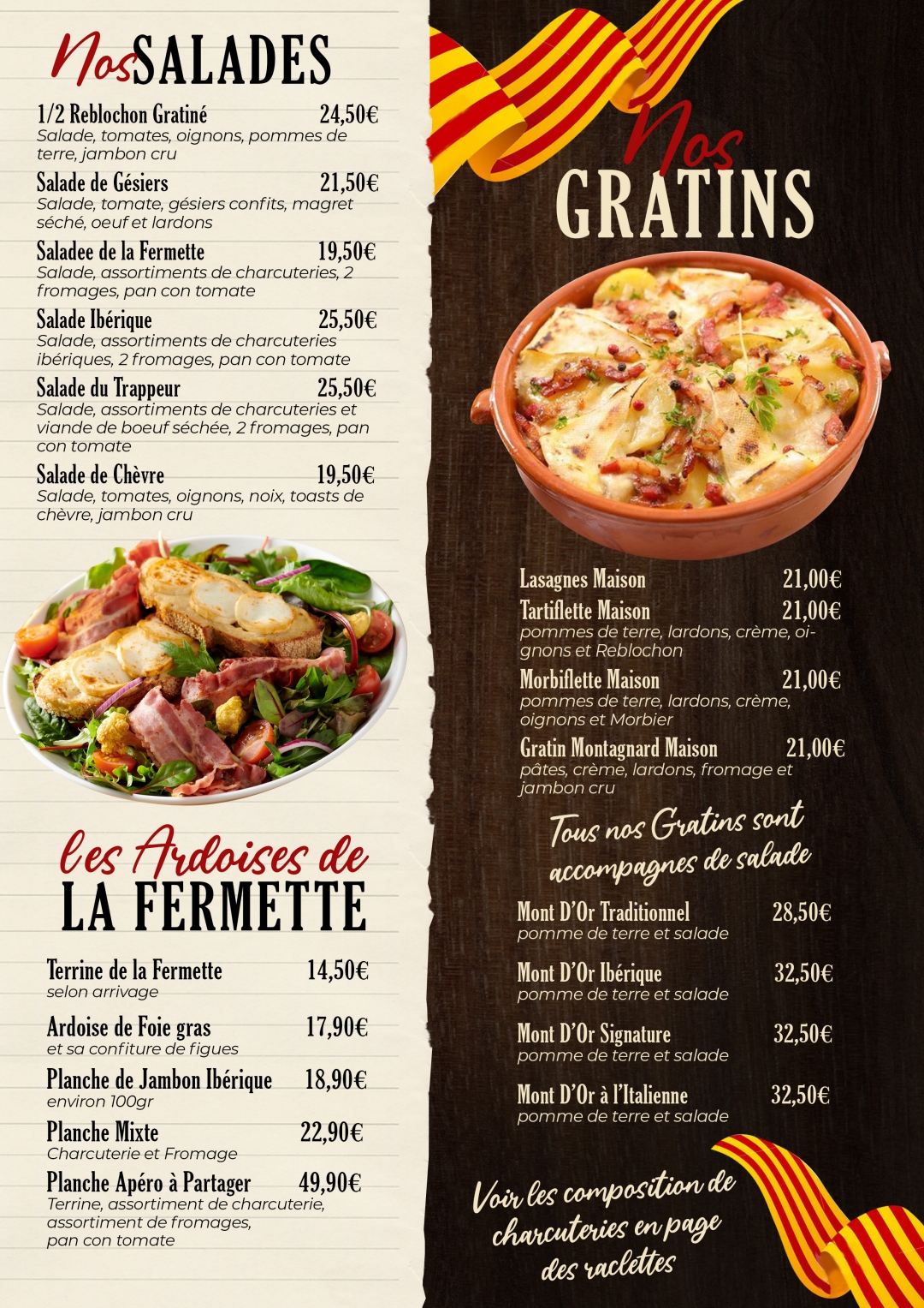 À La Fermette de Bolquère notre menu est une déclaration d’amour aux montagnes des Pyrénées. Nous mettons un point d’honneur à sélectionner des produits locaux de la plus haute qualité, des fromages artisanaux aux charcuteries traditionnelles, en passant par des viandes exceptionnelles. Chaque plat est une célébration des saveurs montagnardes, un hommage à la richesse du terroir local.